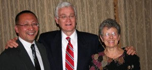 James The was awarded the Extra Mile Award at last year's Faculty Awards Banquet. He is shown here with University President Eric Anderson and fellow awardee, Donna Morrison.